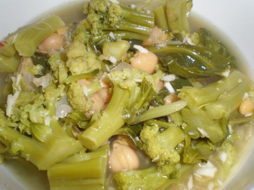 Csicseriborsót éjszakára beáztatjuk, majd puhára főzzük. Hozzáadjuk brokkolit és a többi alapanyagot. Készre főzzük.