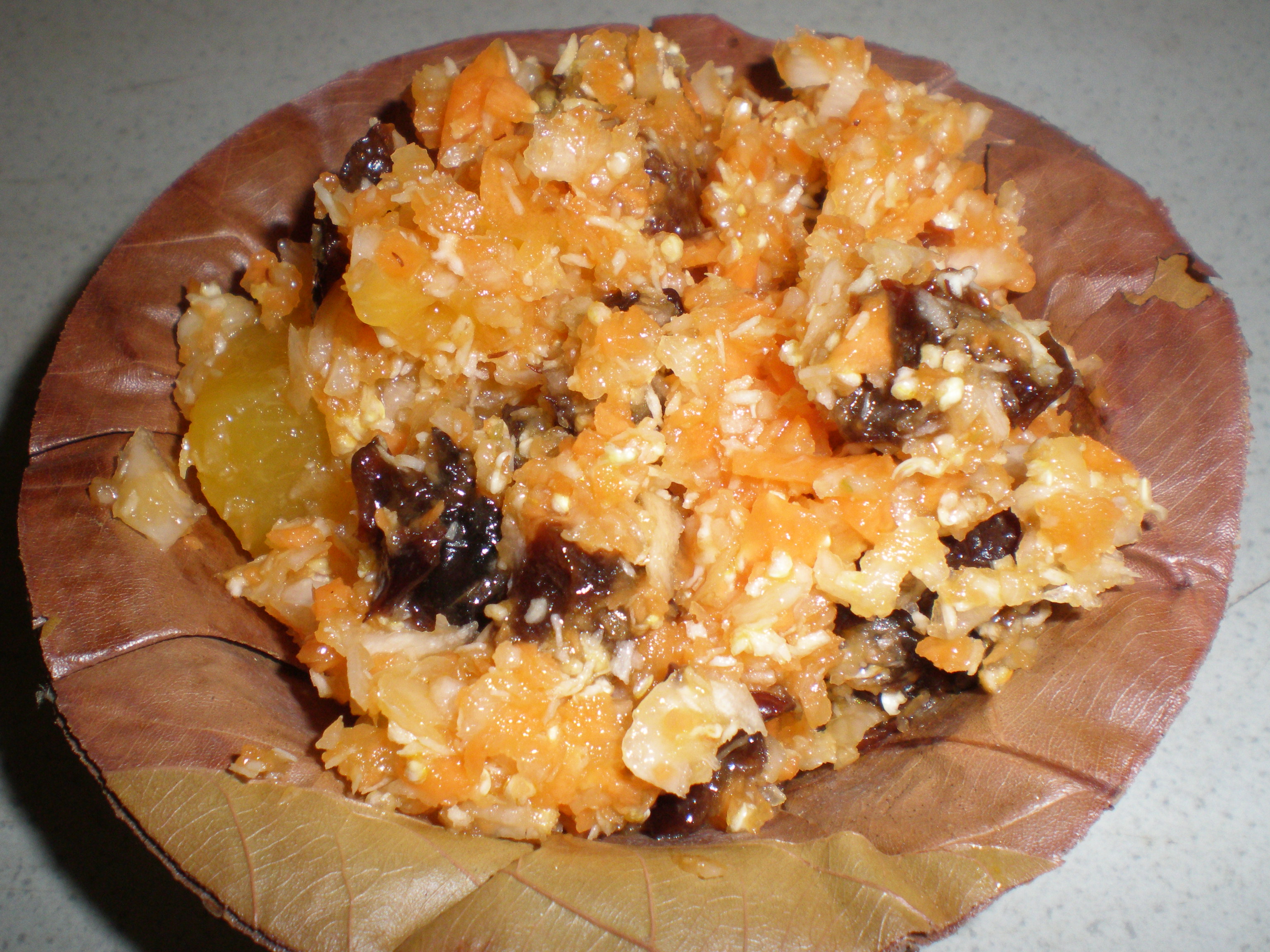Ezt kell tenned: zöldségeket megtisztítani és tetszés szerinti apróra varázsolni – aszalt szilvát is feldarabolni – minden más alapanyaggal jól összekeverni – hálát adni Istennek.
