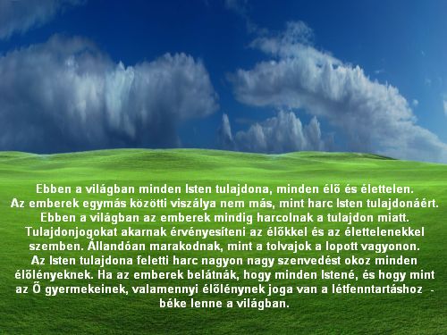 Lehet, hogy azt gondoljuk, a világ mindig megsemmisül, és újra megteremtődik, de az isteni tervben nincs benne az, hogy ember elpusztíthassa azt, amit Isten teremtett. De nincs benne az isteni tervben a mérhetetlen emberi önzés sem, ami számos szörnyű helyzetet teremthet.